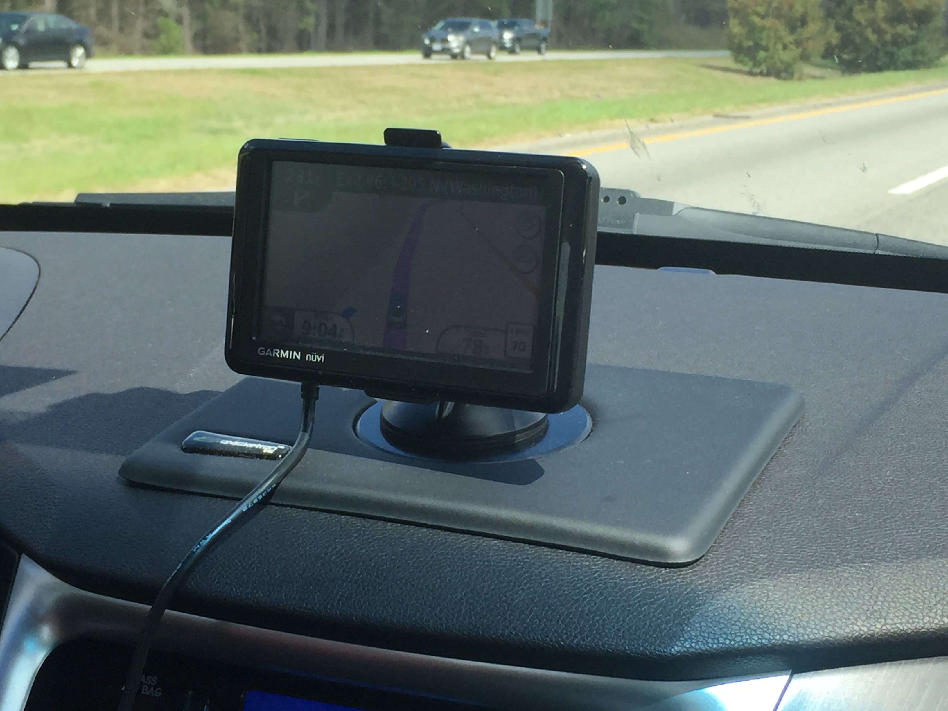 imageWe traveled with our GPS, even if we didn’t always follow her advice, as we were also following AAA Triptiks. There was a lot of “recalculating” done by her in the course of the week, and we still wonder if the couple of times we did follow her directions, she wasn’t getting back at us, as some directions seemed a little off. One thing that we did this trip was not mount the GPS on the windshield. Always seems like a reach to us to hit the buttons, and we’re not really thrilled that when it’s mounted on the windshield it blocks our view to the right. So Frank found this “sticky” pad for the dashboard. It mounted in a great place just above the radio, was easy to see and operate, and didn’t block our view. We will be getting a lot of use out of this!